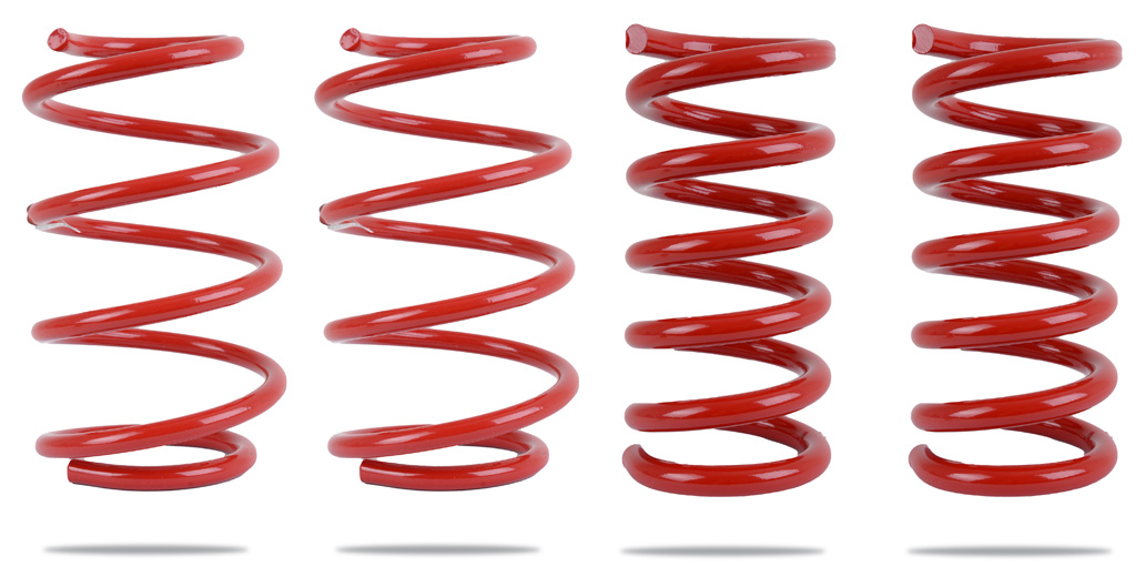 Satsen innehåller 4 Pedders SportsRyder sänkningsfjädrar till din Mustang som enkelt ersätter Fords originalfjädrar.